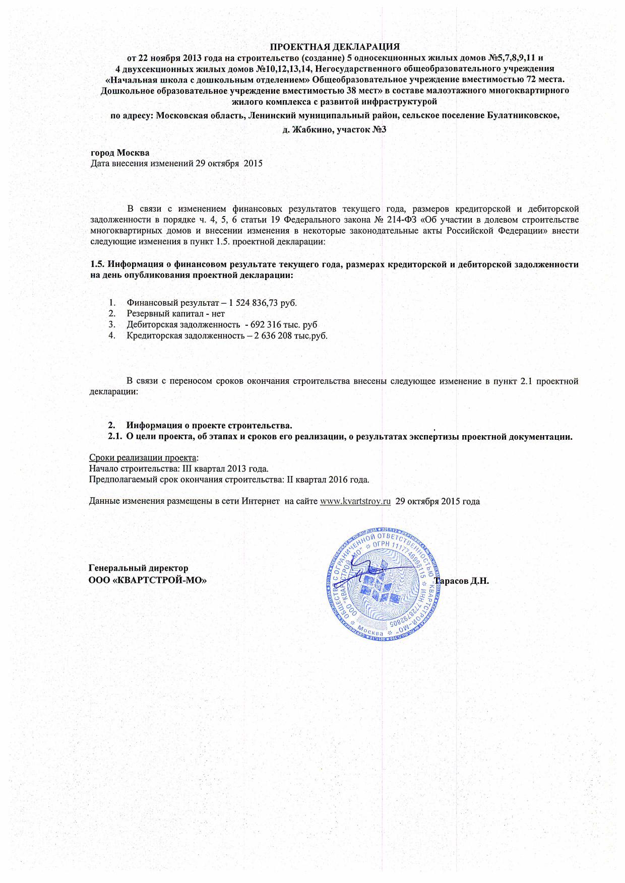 Застройщик ООО «Квартстрой»
