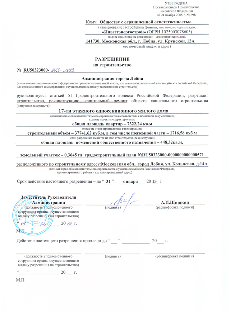 Застройщик ООО «Инвестэнергострой»
