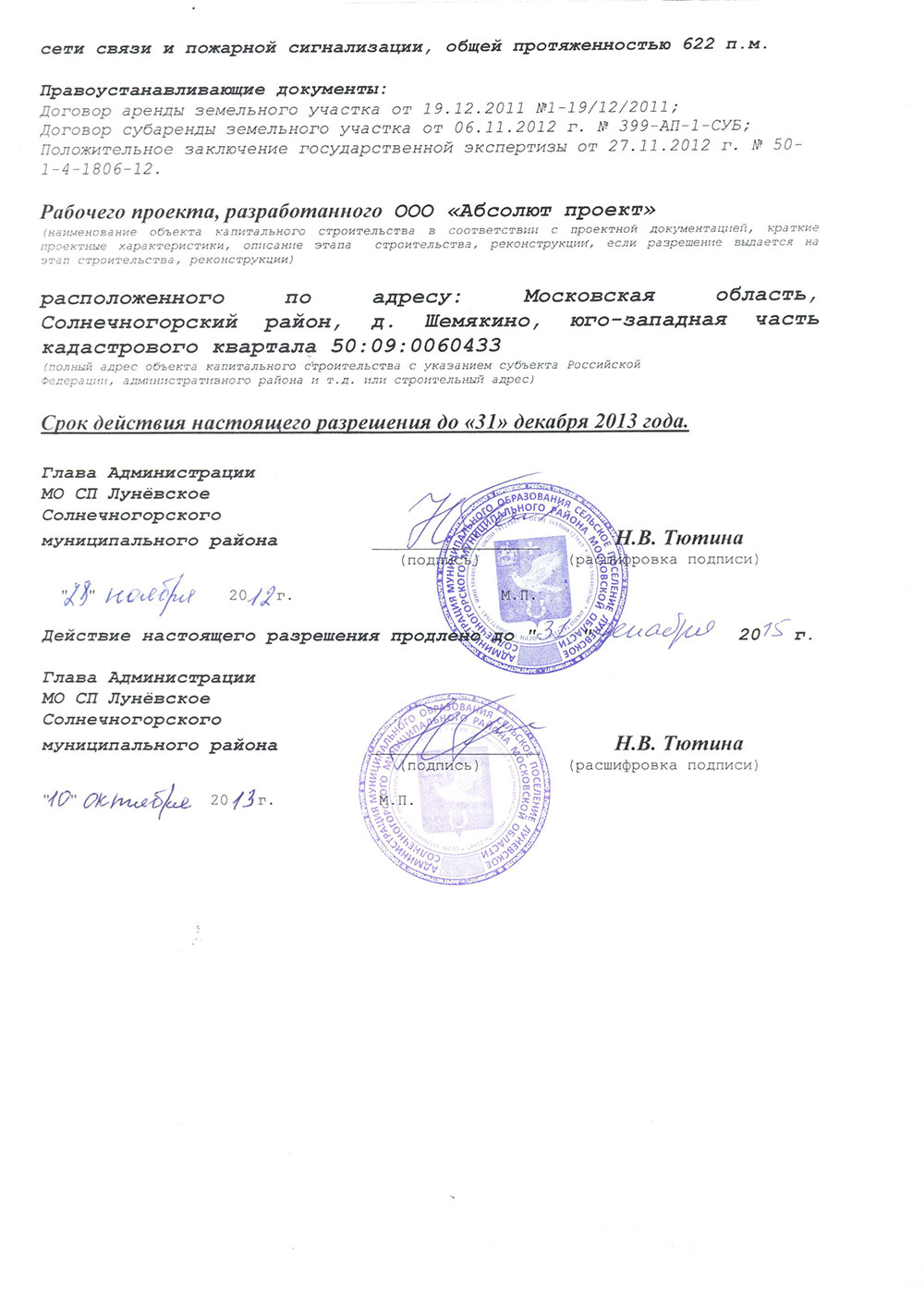 Сдан в 2012 году.
