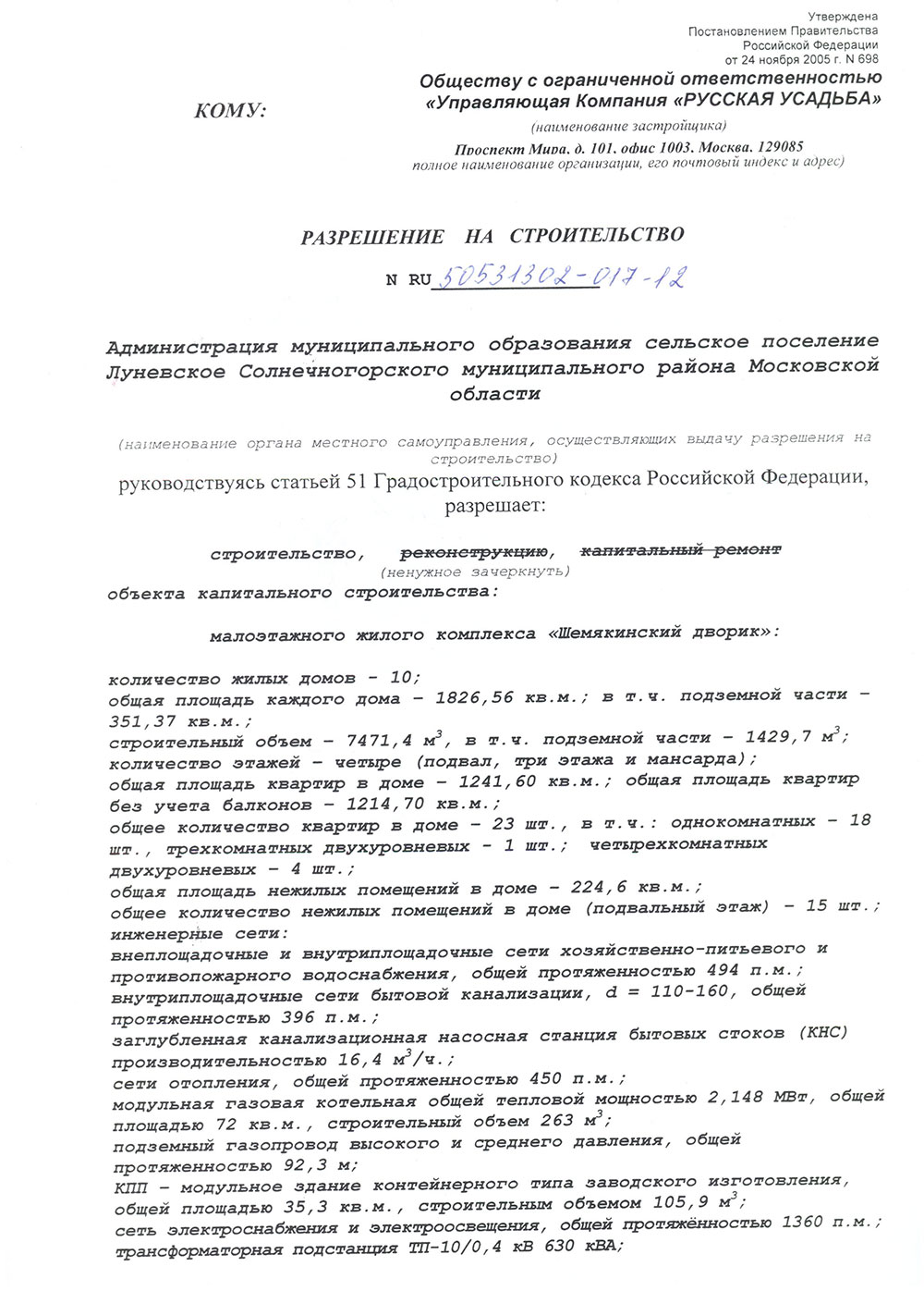 Застройщик Русская усадьба
