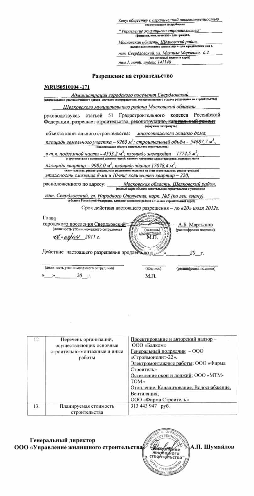 Стадия строительства