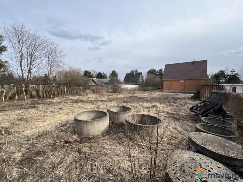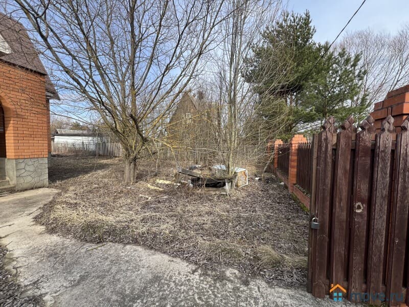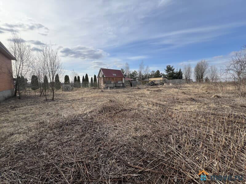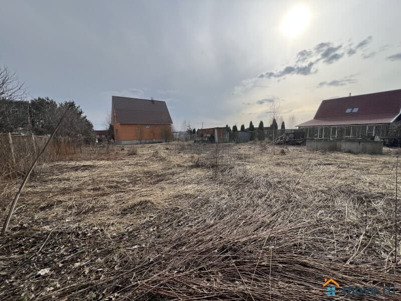 Земельный участок 12 соток (ИЖС), ухоженный, ровный, прямоугольной формы, со всех сторон огорожен забором, въезд на участок, оборудован воротами и калиткой. Стоянка для автомобиля, дорожки по участку вымощены плиткой. Посажены молодые деревья и кустарники