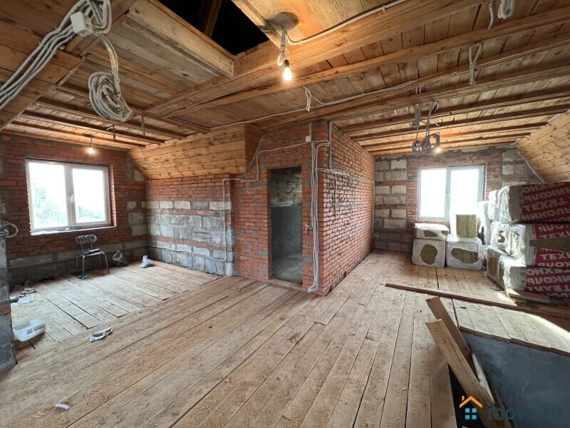 Коммуникации в доме - электричество - 15 кВт подключено, сделана разводка электрики по всему дому, вода - сделан вывод водопровода из дома, разводка труб по всему дому (кухня, санузлы), подготовлены кольца для прокладки воды из колодца, канализация - сделан вывод канализационной трубы в септик, сделана разводка канализационных труб по всему дому, возможно подключение высокоскоростного оптоволоконного интернета. Магистральный ГАЗ по программе газификации в 2026 году.