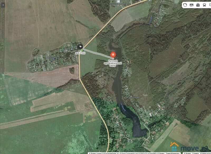 85 км от МКАД по Минскому, Можайскому, Новорижскому шоссе до г. Руза 9 км, до г. Можайск 18 км.