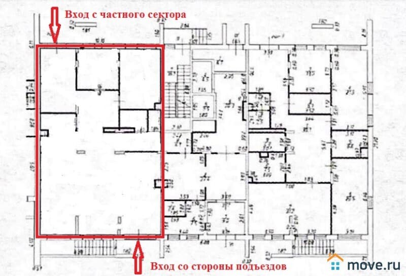 Расположение на 1 этаже высокоэтажного жилого дома в густонаселенном районе.