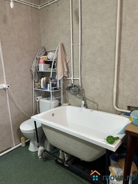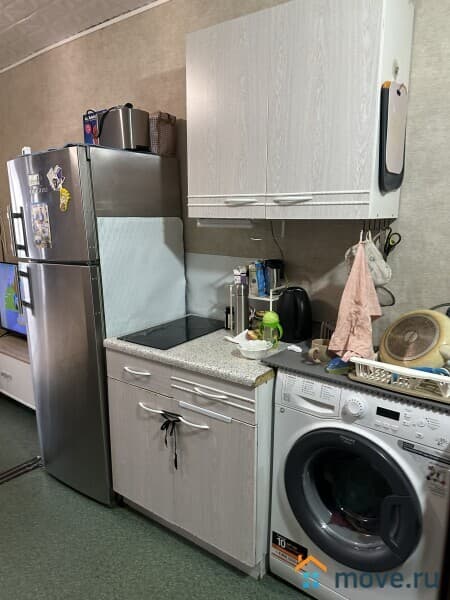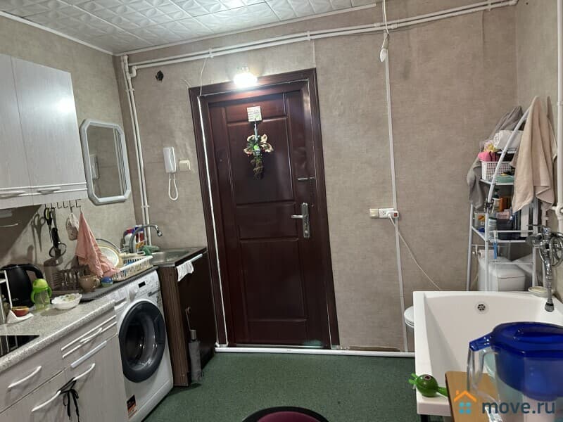 Комната в хорошем состоянии. Общая площадь 16,4 кв.м. Проведена вода. Установлена стиральная машинка, небольшая ванная, плита. Санузел на этаже на 3 комнаты. Остаётся вся мебель и техника.