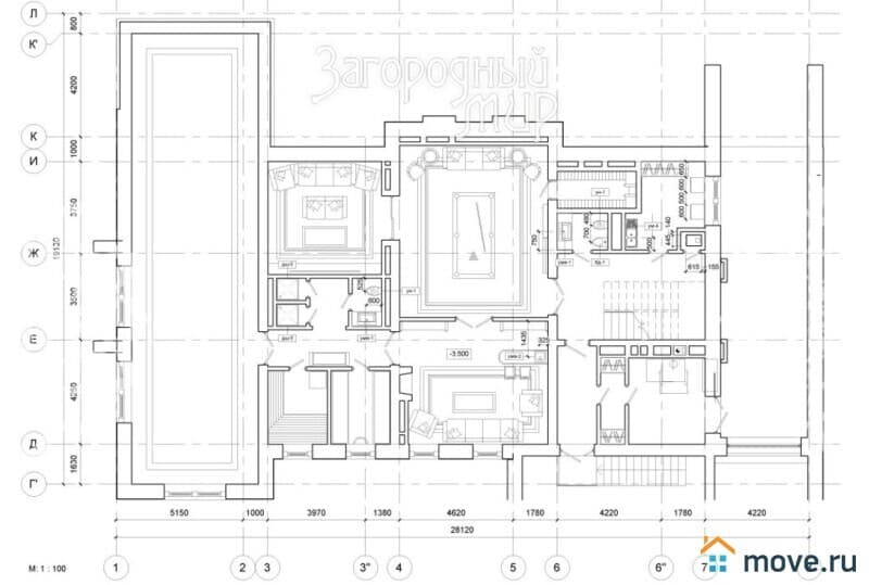 В цокольном этаже большой оборудованный гараж на несколько автомобилей, лодок и катеров. Банный комплекс с чашей под бассейн, комнатой отдыха и вспомогательные помещения.