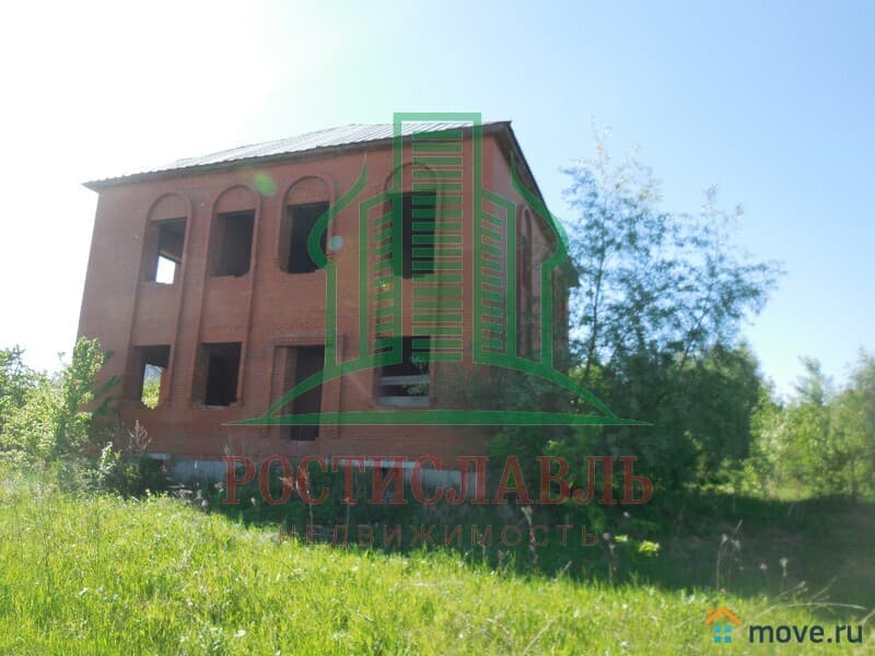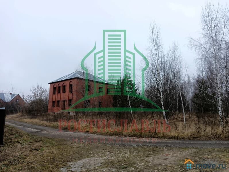 На участке незарегистрированное строение. Дом кирпичный, двухэтажный, с большим подвальным помещением. Площадь застройки дома 12х12м. Перекрытия – железобетонные. Большое гаражное помещение на первом этаже. Возможно подведение электричества, водопровода и газа.