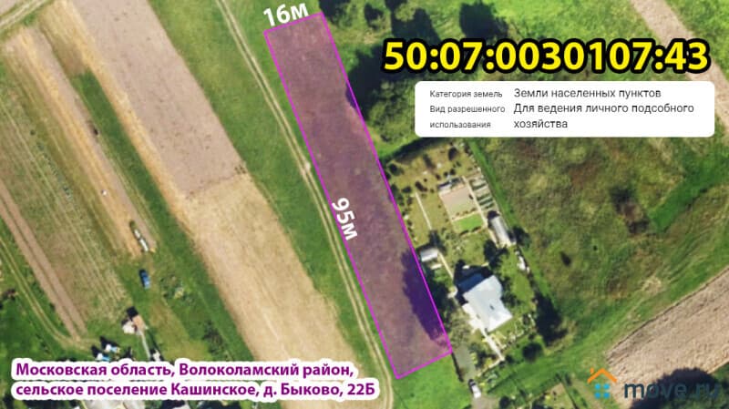 Продажа оформленного участка площадью 15 соток в деревне Быково Волоколамского муниципального округа Московской области. Ново-рижское направление Подмосковья в 110 км. от мкад. Небольшая дачная деревня в одну улицу в 7 км. от центра города Волоколамска. Участок прямоугольной формы, вытянутый вдоль улицы, что удобно при строительстве и эксплуатации. Участок сухой. Находится на возвышенности. Без сорняков, борщевика и поросли. Размер участка 95 м. х 16 м. Тихая тупиковая деревня. В собственности одного взрослого дееспособного лица с 2012 г. на основании выписки из похозяйственной книги. Все документы оформлены. Межевание проведено. На кадастровом учёте с определением координат. Для удобства покупателя, предварительно оформлен ГПЗУ (Градостроительный план земельного участка). Присвоен адрес. Проверен на отсутствие пересечений с ЗОУИТ (Зоны с особыми условиями использования территории). Свободная продажа по цене 600 т.р. Сопровождение сделки купли-продажи и помощь в организации безопасных расчётов в подарок от нашего агентства. Звоните!
