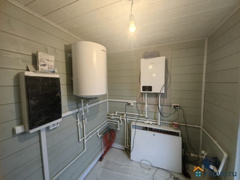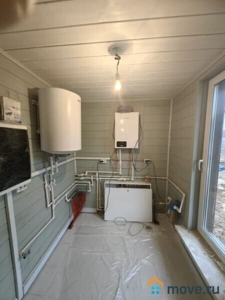-Коммуникации: Отопление – электрический котел, водяные теплые полы + радиаторы (тариф на электричество деревенский); Электричество – 15 кВт, 3 фазы, заведено в дом и разведено по точкам потребления с заземлением; Водоснабжение – скважина, заведена по-зимнему, с обогревом трубы;