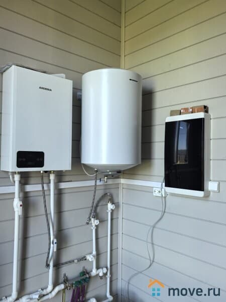 4. Отопление: электрический котел — тепло и горячая вода в любое время года. Газ по границе участка.