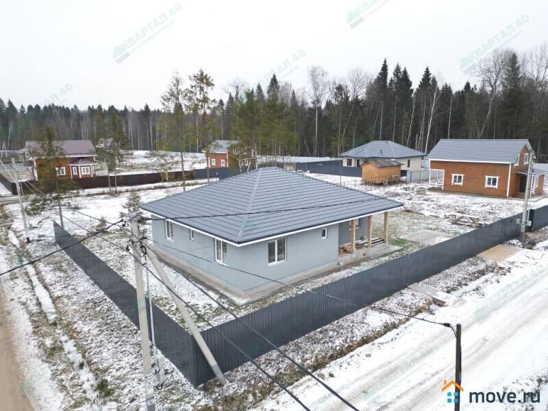 В продаже от застройщика одноэтажный блочный дом со всеми коммуникациями. Продается с отделкой «под ключ». Заведены и разведены по точкам потребления все коммуникации. Участок огорожен забором по периметру, расположен в двух шагах от леса. Подходит под семейную ипотеку.
