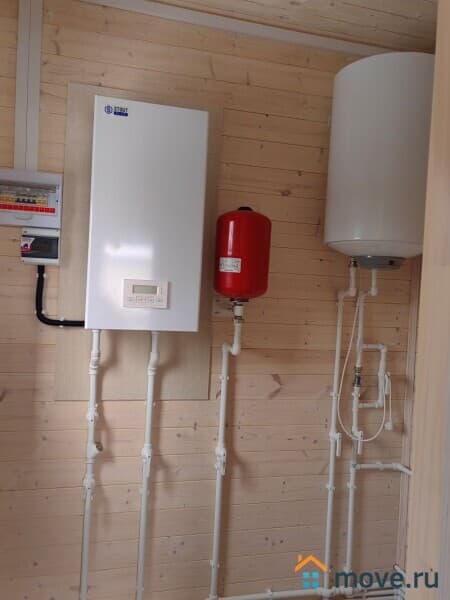 Коммуникации: Водоснабжение - колодец (зимний ввод в дом 12 колец); Электричество 15 кВт; Канализация - автономная станция био очистки; Отопление - электро котел, водонагреватель, разведены батареи. Установлена сантехника.
