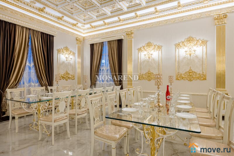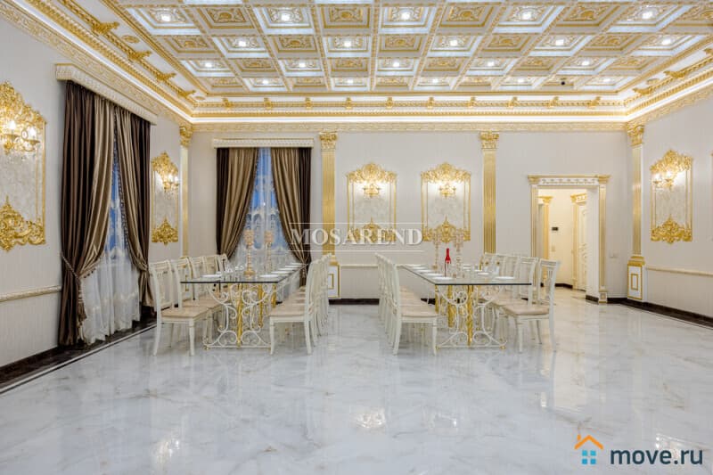 - просторный и светлый банкетный зал площадью 70 м2 с электрокамином, большой колонкой, двумя стеклянными столами ручной работы