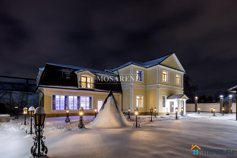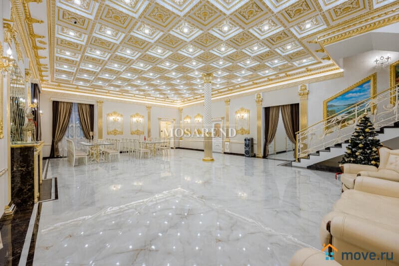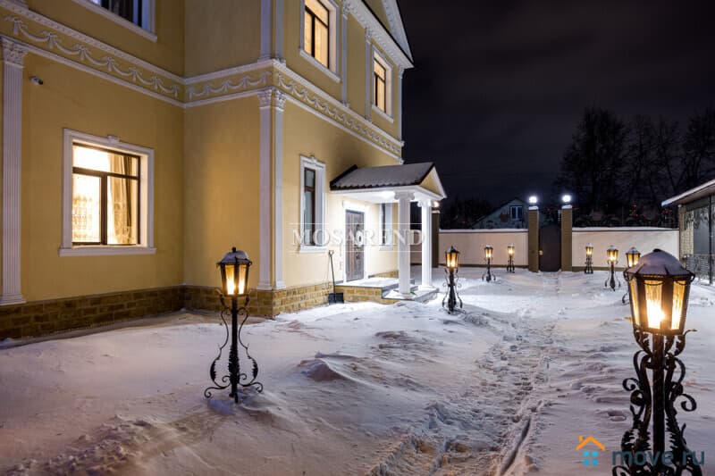 Роскошный коттедж площадью 800 м2 расположен в 10 км от МКАД по Новорязанскому шоссе, в г. о. Люберцы, пос. Чкалово.