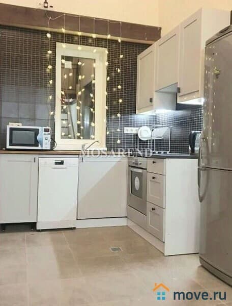 -имеется вся необходимая техника: холодильник, плита-стеклокерамика, микроволновка, чайник, посудомойка, стиральная машина