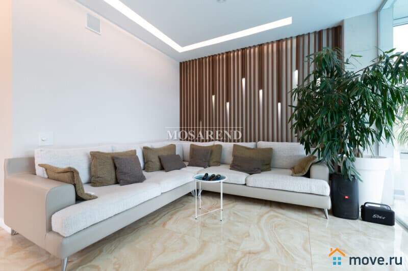 -большая зона гостиной 80 м2 с большим двуспальным диваном