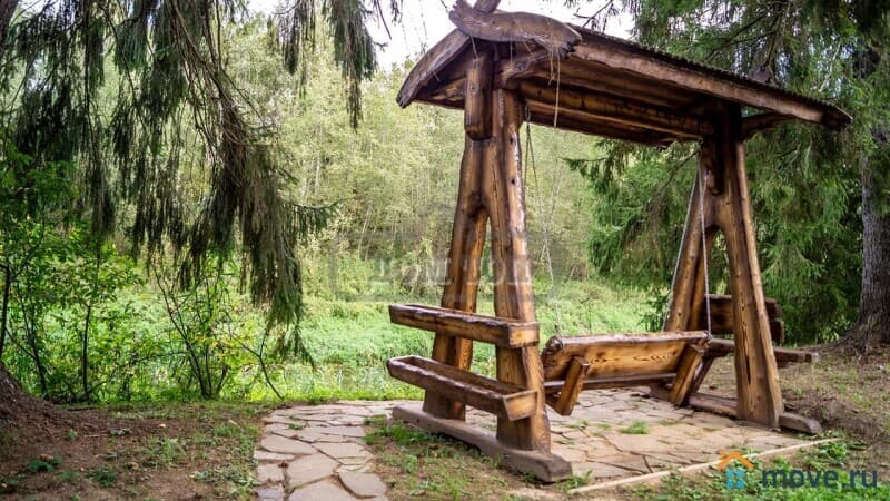 УЧАСТОК: 12 Га. Благоустроенная набережная вдоль реки Дубна протяженностью более 500м, вдоль которой располагается огромное количество деревянных строений ручной работы (лавочки, качели, беседки), а также уникальная деревянная летняя веранда, возвышающаяся над рекой Дубна у основания векового дерева.