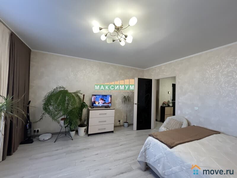 Жилая комната 20 кв.м.: двуспальная кровать, комод под телевизор, телевизор, два кресла, журнальный столик, торшер, утюг, гладильная доска, сушилка