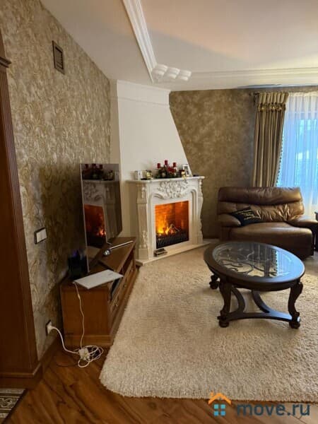 Стоит на плите. Фасад оштукатурен и выложен дорогой плиткой, 257 кВ метра. Есть прекрасный подвал по всему периметру дома, глубиной 1,5 метра, крыша из дорогого Катапала. Все коммуникации -централизованные - вода, свет, газифицированный дом. B доме 6 комнат-4 хорошие спальни, большая гостиная с современным камином, кабинет, кухня. Удобные лестницы в доме с дизайнерскими кованными перилами, отделанны дубом придают дому величие и великолепие. Просторная прихожая с деревянными потолками в классическом стиле. Везде дубовые встроенные шкафы. Все в едином классическом стиле, из дорогих добротных материалов ,камерно, без излишеств. Продуманна серьезно входная группа. На каждом этаже санузел.