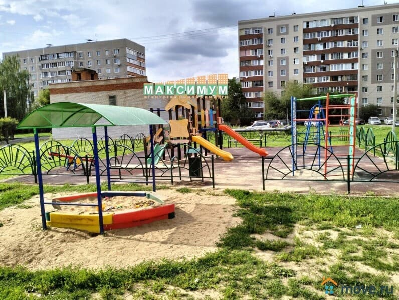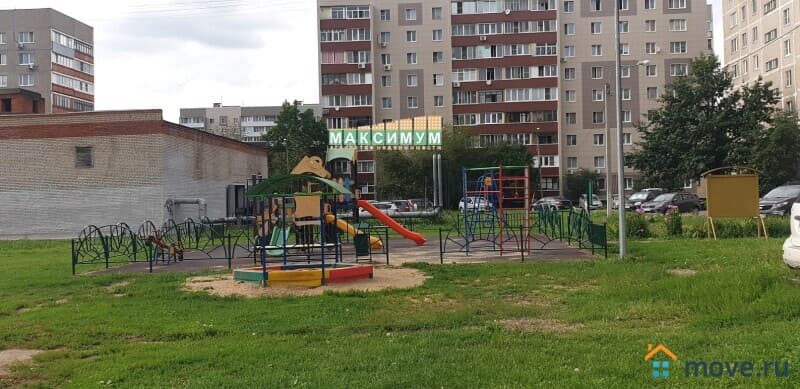 Во дворе дома современная детская площадка, удобная парковка для автомобилей.