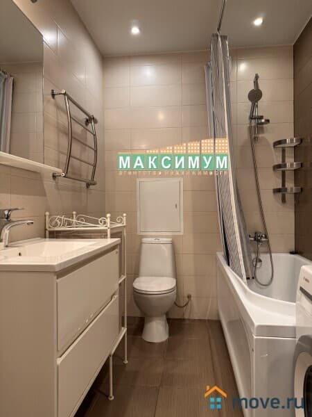 С/у: тумба с раковиной, зеркало, унитаз, ванная, стиральная машина
