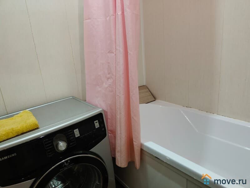 Кухня полностью оборудована необходимой техникой: микроволновка, плита, чайник, холодильник и стиральная машина.