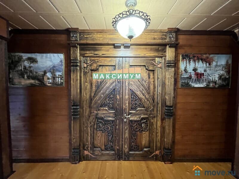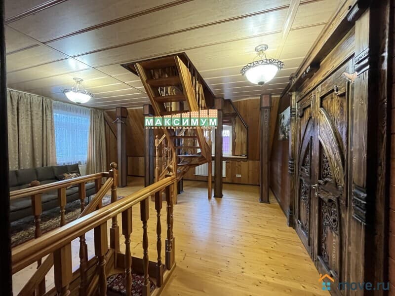 На втором этаже: большая комната - домашний кинотеатр с эксклюзивной резной двух створчатой дверью ручной работы, холл с изящной лестницей.