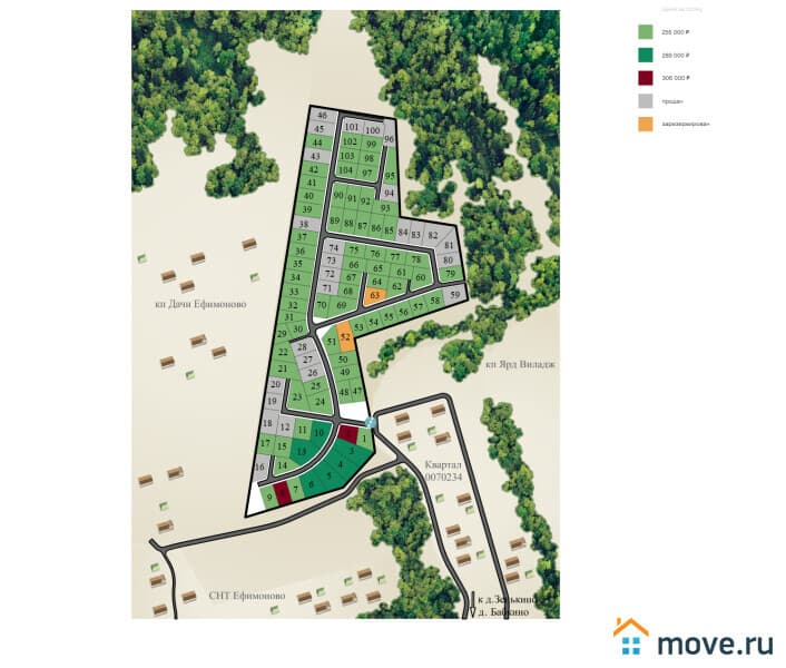 Есть другие площади участков, так же прилесные и с хвойными деревьями