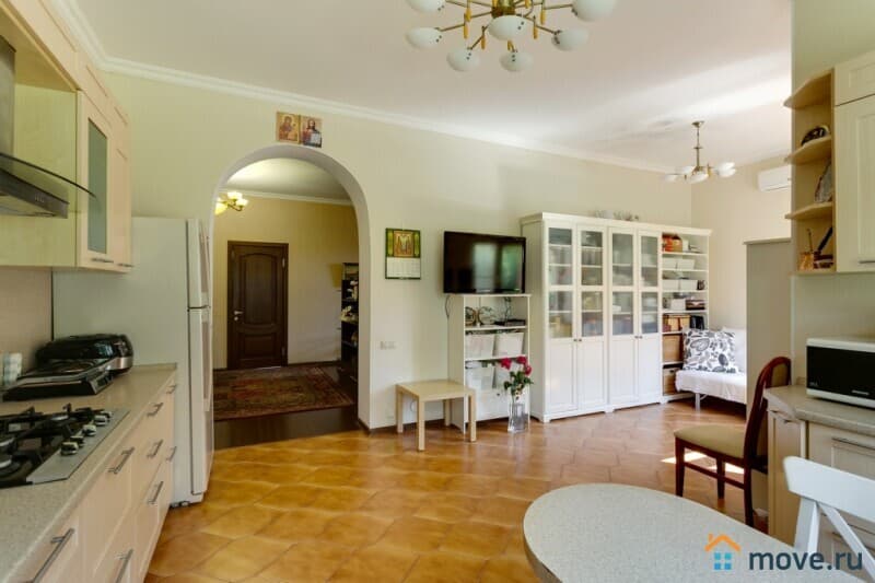 Установлены пластиковые окна, кондиционеры, тёплые полы, дровяной камин облицован мрамором.
