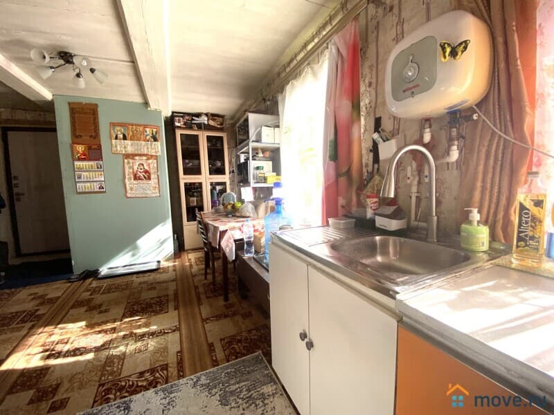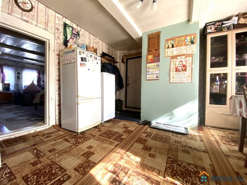 Предлагаем Вашему вниманию крепкий, тёплый дом. Дом из бревна, общая площадь 70 кв. м. Кухня 18 кв. м., большая просторная комната, санузел в доме, установлена ванная. В данный момент отопление печное (две новые, отлично работающие печки). Газ по границе участка, центральный водопровод и электричество заведены в дом, горячая вода от бойлера. Отстойник два колодца с переливом.