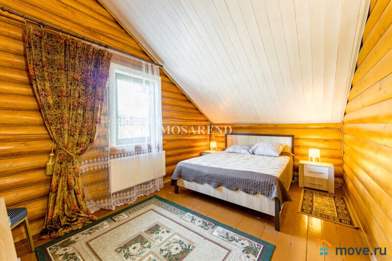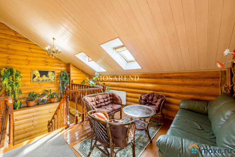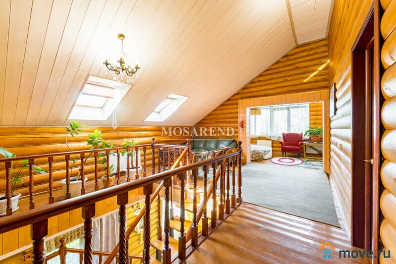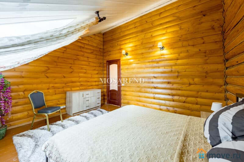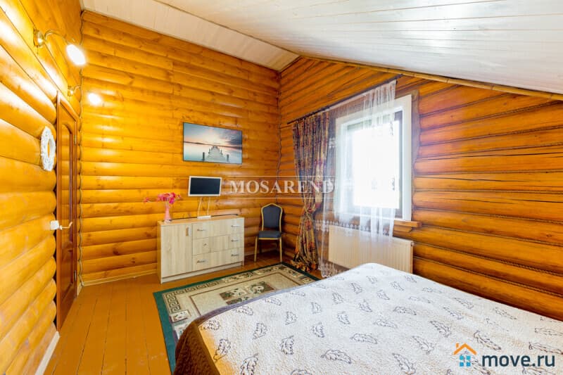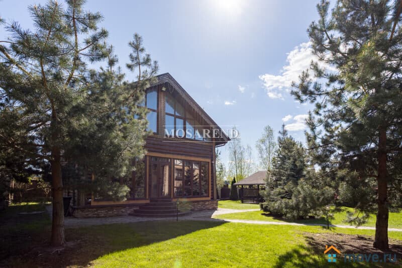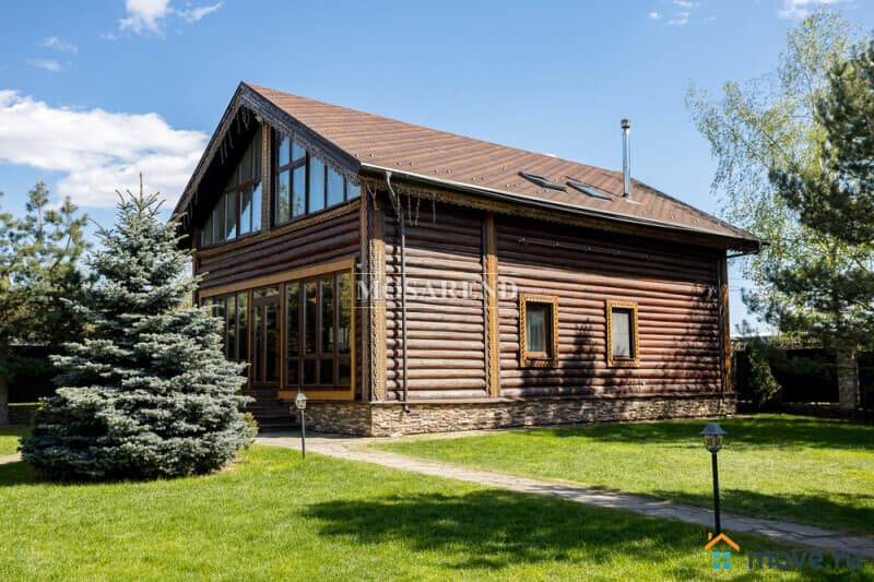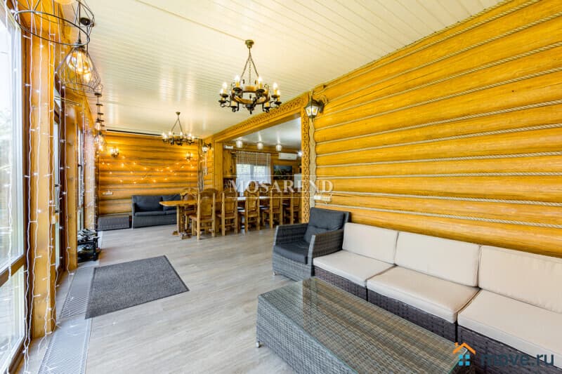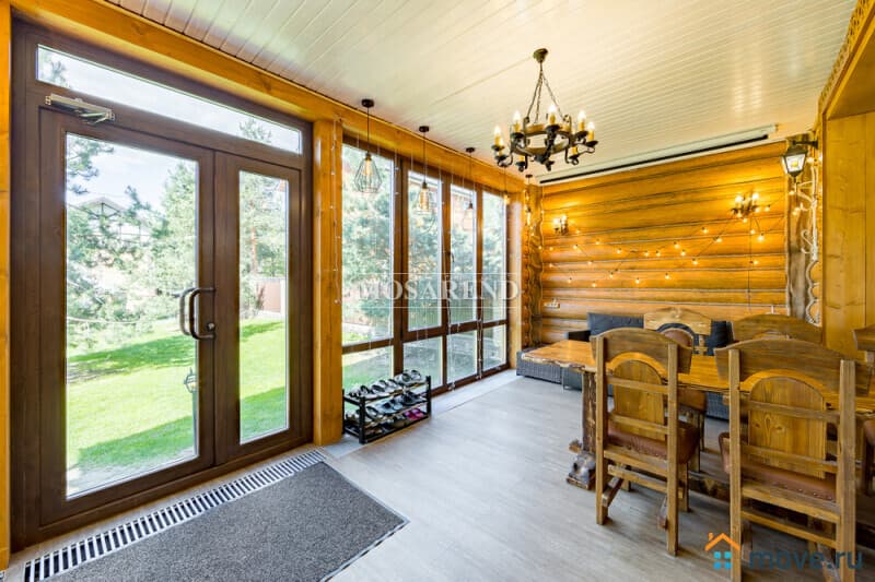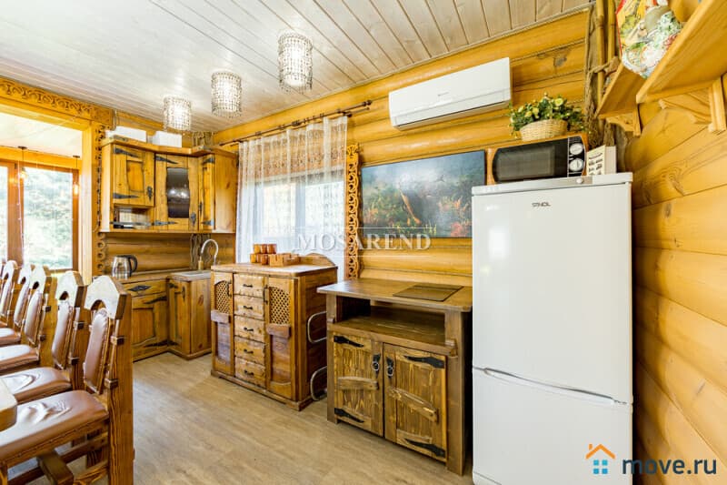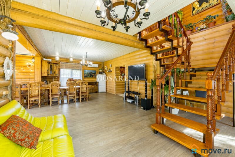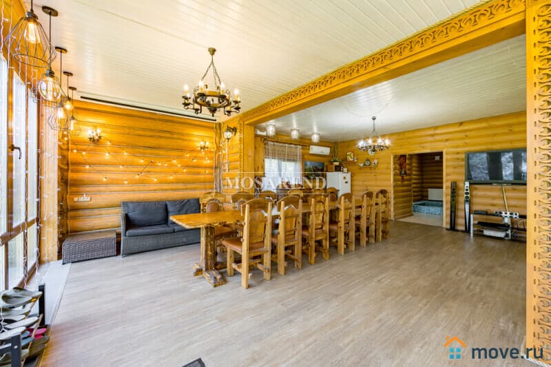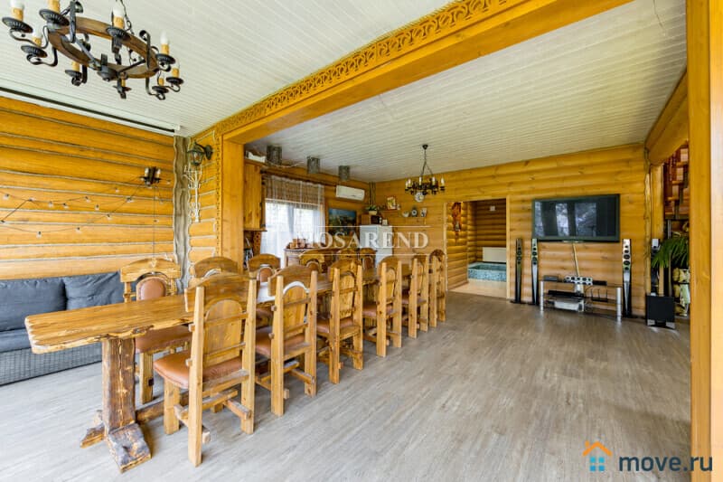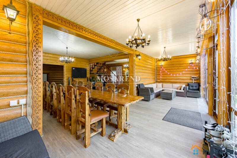 Коттедж из оцилиндрованного бревна площадью 300 м2 на 20 гостей с баней, бассейном и большой беседкой находится вблизи Клязьминского водохранилища, в деревне Ерёмино-2, в 12 км от МКАД по Дмитровскому шоссе.
