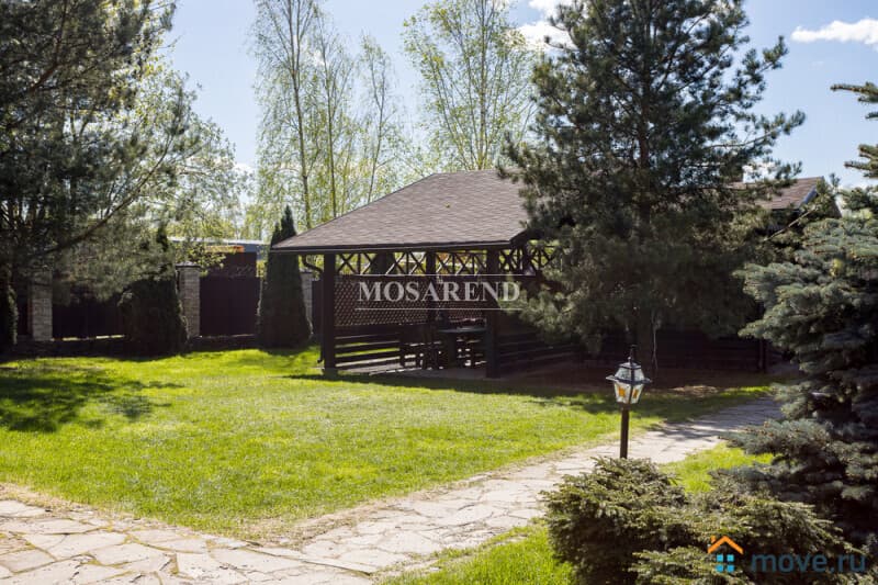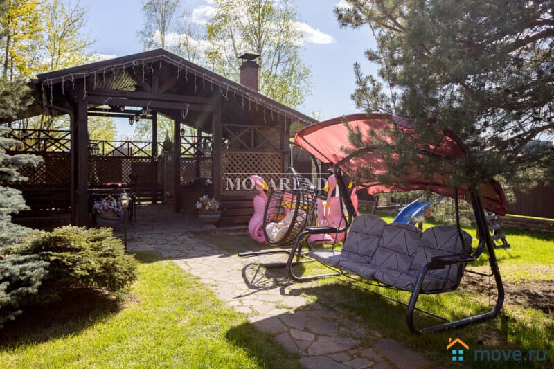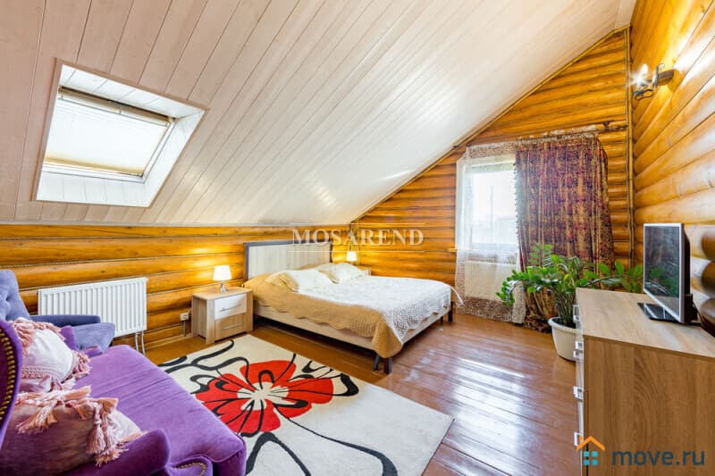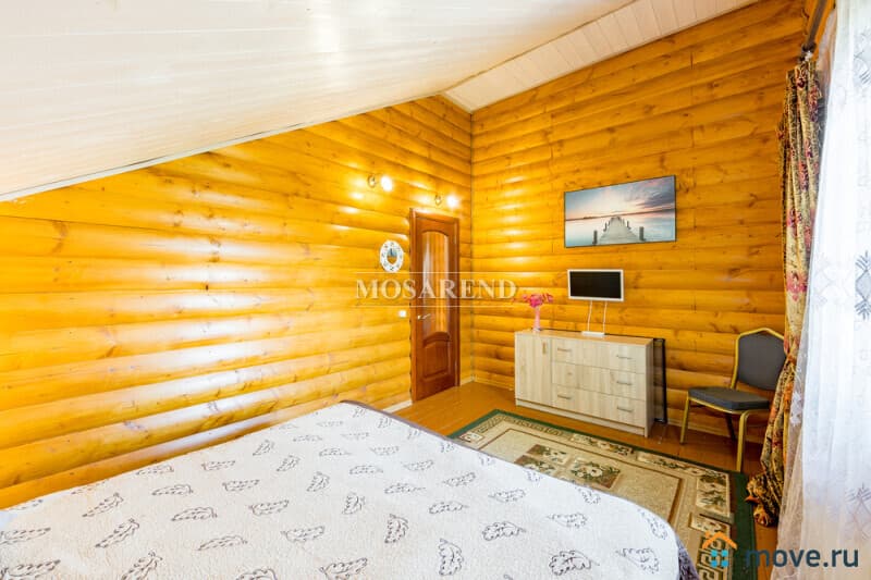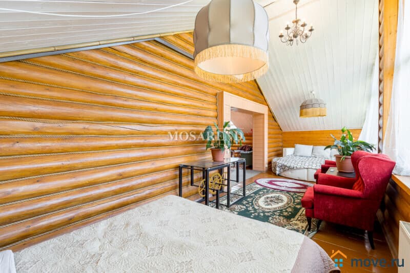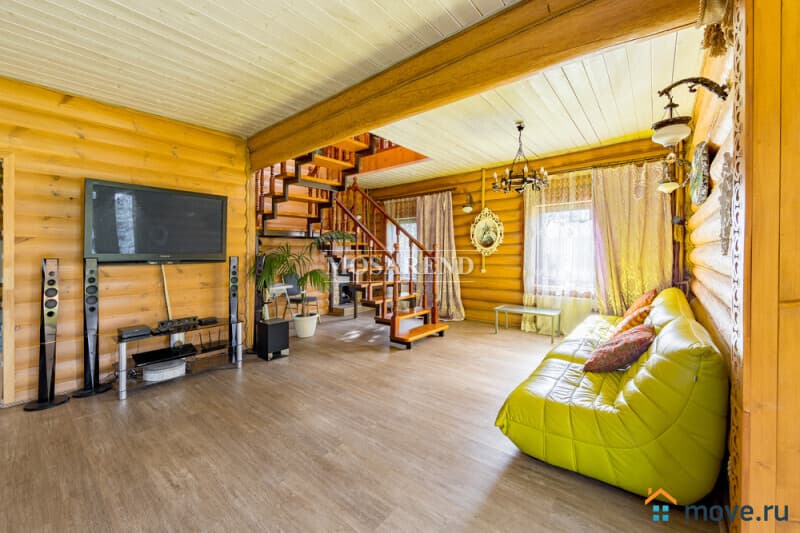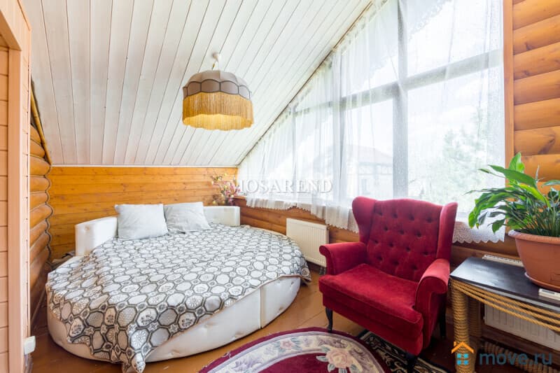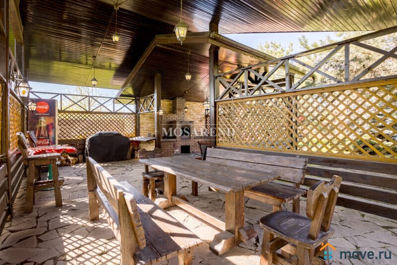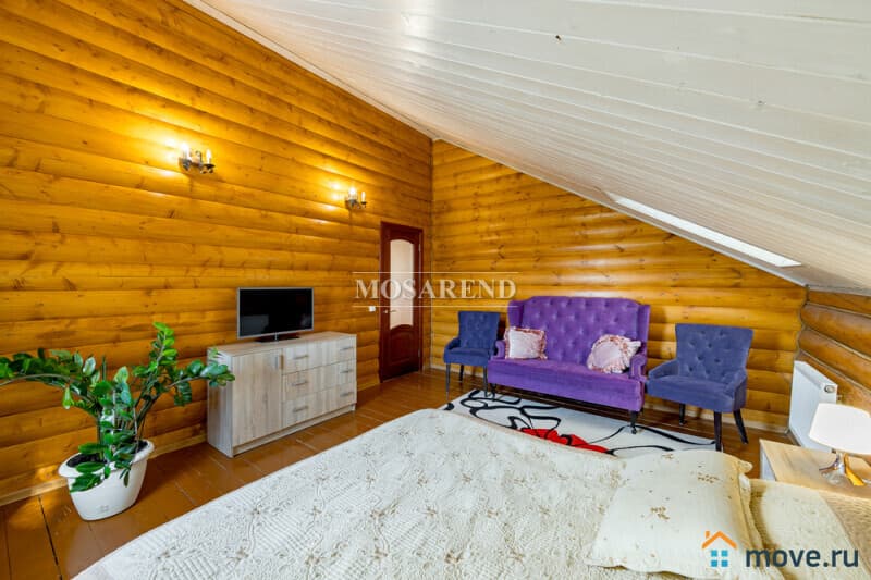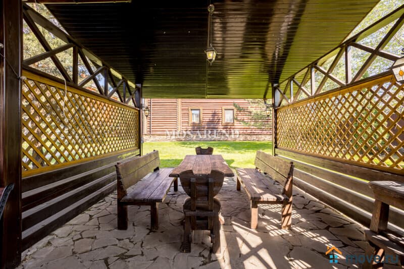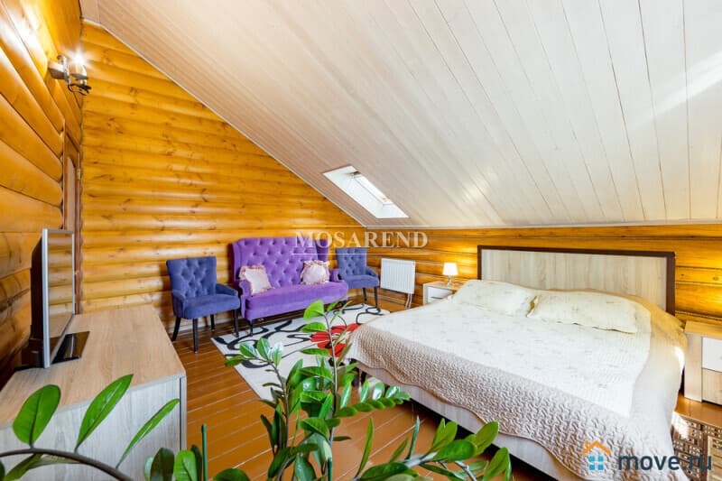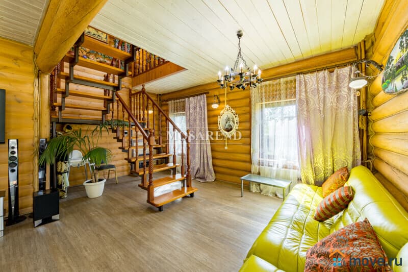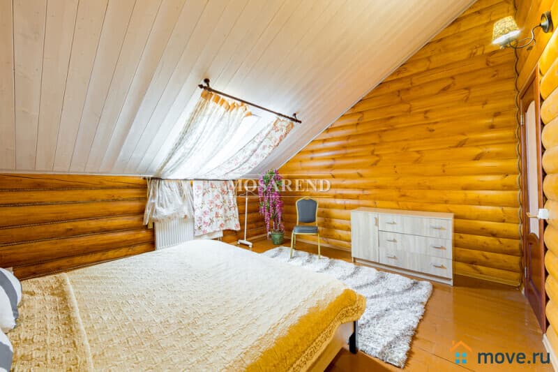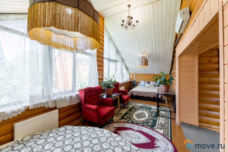 Коттедж из оцилиндрованного бревна площадью 300 м2 на 20 гостей с баней, бассейном и большой беседкой находится вблизи Клязьминского водохранилища, в деревне Ерёмино-2, в 12 км от МКАД по Дмитровскому шоссе.