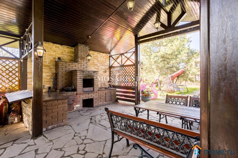 -беседка с зоной барбекю на 20 человек, мангал, печь для казана, казан, шампуры, решётка, беседка оборудована раковиной и водой