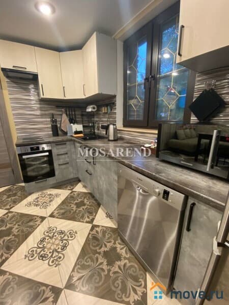 -кухня-гостиная с современной техникой: большой холодильник Siemens, индукционная варочная плита, духовой шкаф, посудомоечная машина Bosch, микроволновка, чайник, вытяжка, столовые приборы, посуда