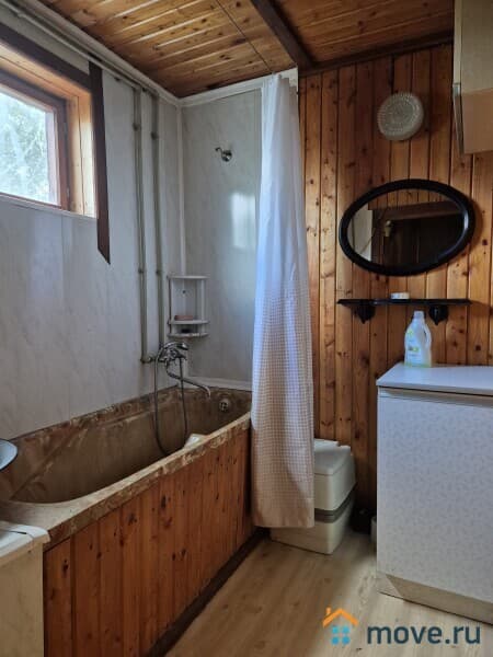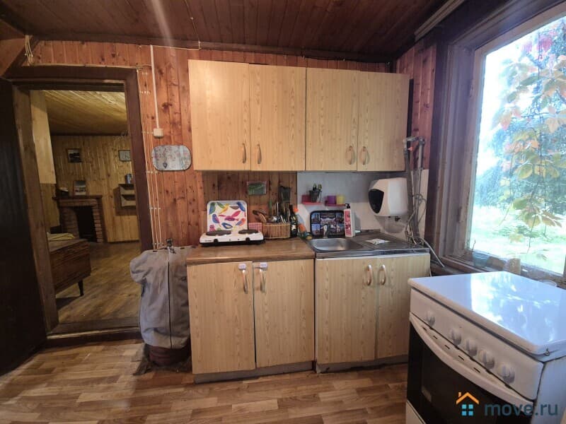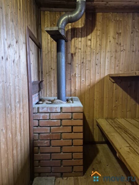 Дом 2-х этажный, 68 кв.м.из оцилиндрованного бревна диаметром 15 см. На первом этаже расположены: кухня, гостиная, с/у, сауна. На втором этаже одна большая комната. Коммуникации: эл-во, центральный водопровод (горячая вода через электронагреватель), газ в баллонах. Подведен интернет и телевидение.