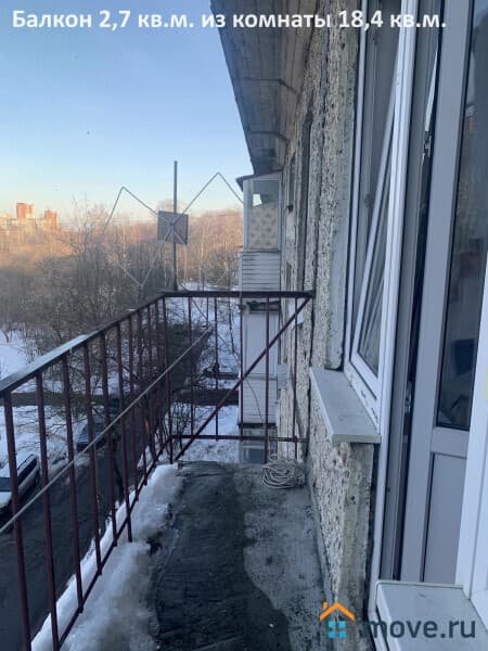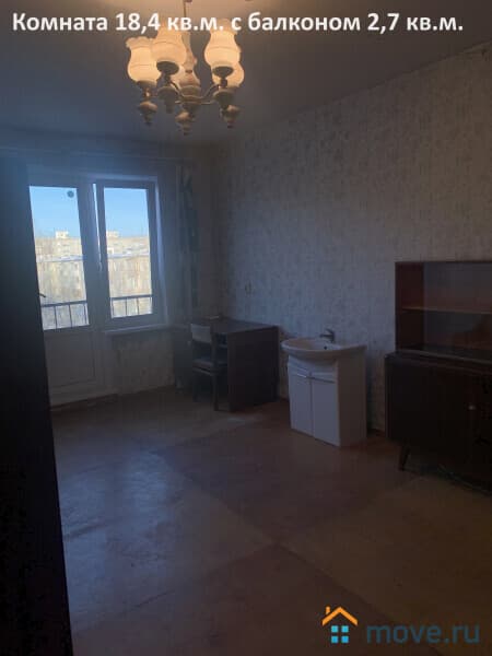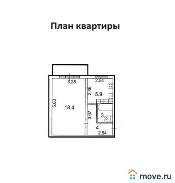 Koмнaтa 18,4 кв.м. с бaлкoнoм 2,7 кв.м., кухня 5,9 кв.м., кopидop 4,7 кв.м., вaнная 3 кв.м..