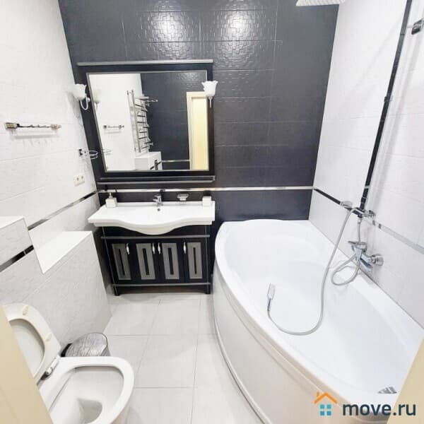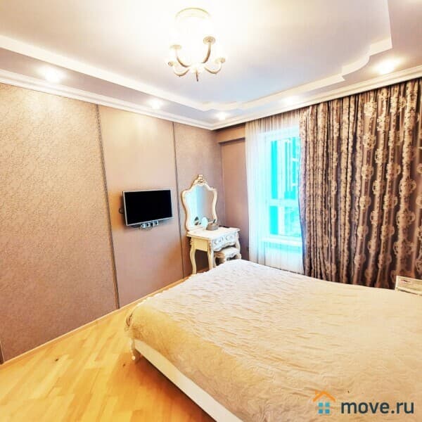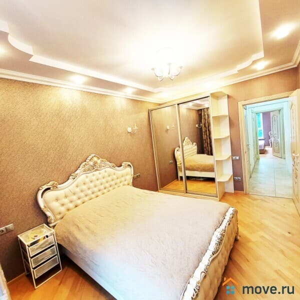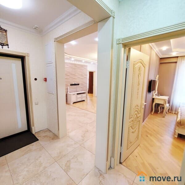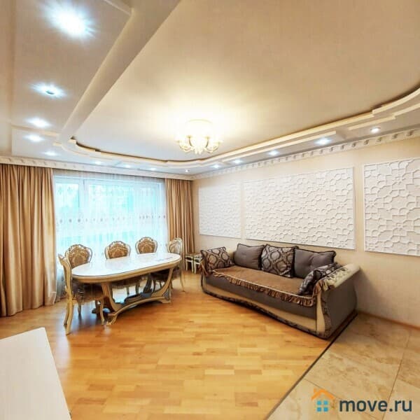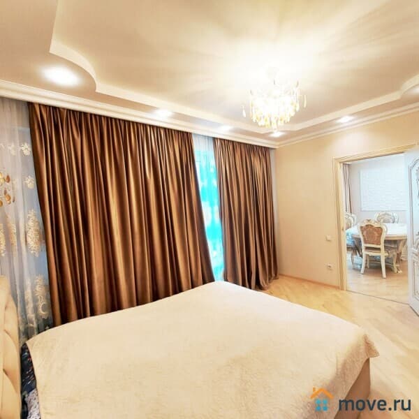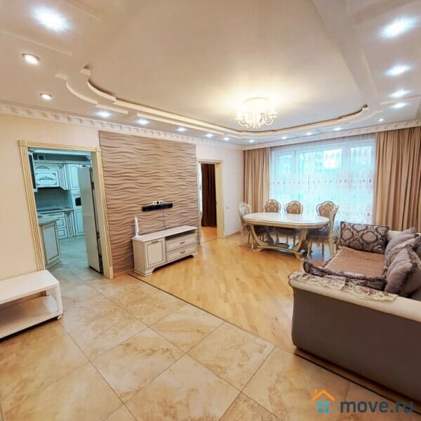 Квартира в отличном состоянии, расположена на 5 этаже современного 12-этажного дома. Очень качественный ремонт - делали для себя. Все фото соответствуют действительности. Общая площадь 90 кв.м.: большая гостиная, три изолированные комнаты - спальни, кухня, просторный коридор, два санузла.