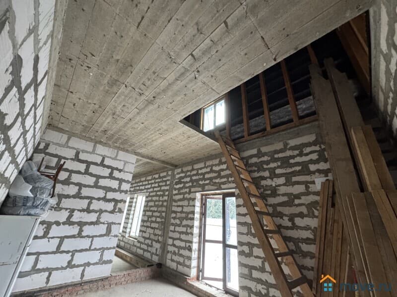 Здание капитальное, 2020 года постройки. Фундамент - монолитная плита 30 см, арматура 16+лента ширина 40 см, глубина 2.5-3.8 метра, арматура 18., монолитное перекрытие между 1 и 2 этажом высотой 13 см, арматура 18. Окна рехау 120 мм. Кровля премиум класса " Испанская Дюна" с скрытым креплением и антивандальным покрытием, толщина краски 0.8 мм. В настоящий момент идут работы по строительству лестницы на второй этаж.