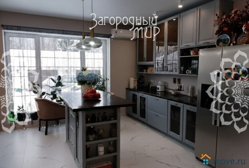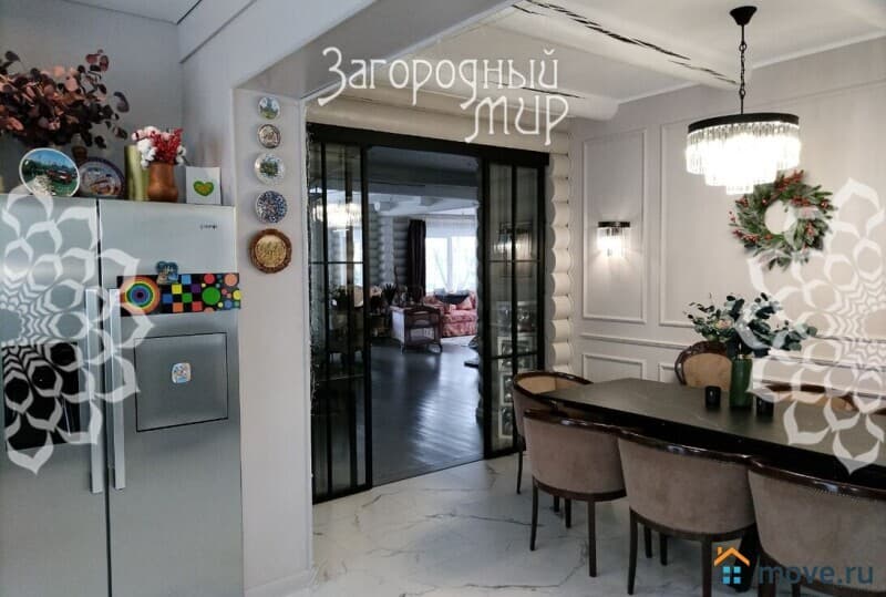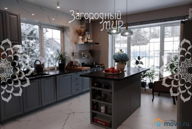 В доме: большая светлая гостиная с зоной отдыха у камина, панорамное остекление, «второй свет», оборудованная кухня-гостиная, 5 спален, кабинет/гардеробная, просторный холл, веранда, терраса, два санузла. Цокольный этаж под основной частью дома с котельной и помещениями свободного назначения (кинотеатр, караоке, винный погреб, помещения для хранения и прочее).