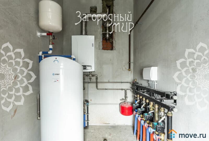 Комплексная система отопления: газовый котел Baxi 24 кВт, бойлер, теплые полы, радиаторы, внутрипольные конвекторы.