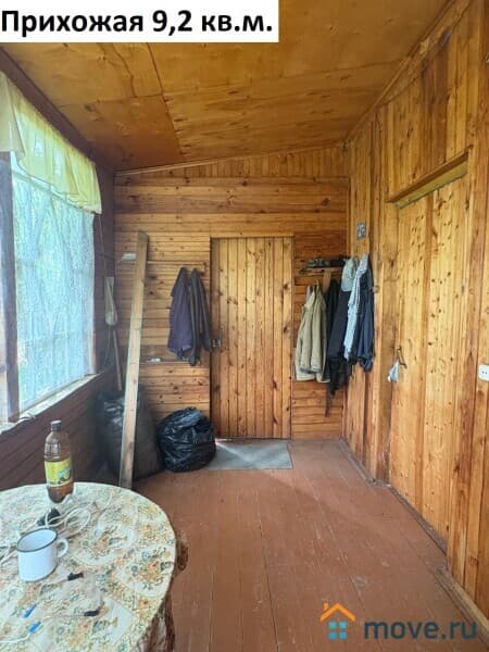 Комната 16,4 кв.м. (кровать, кресла, шкаф, диван). Прихожая 9,2 кв.м. (стол, стулья, скамейка). Кухня 5,7 кв.м. (холодильник, раковина).