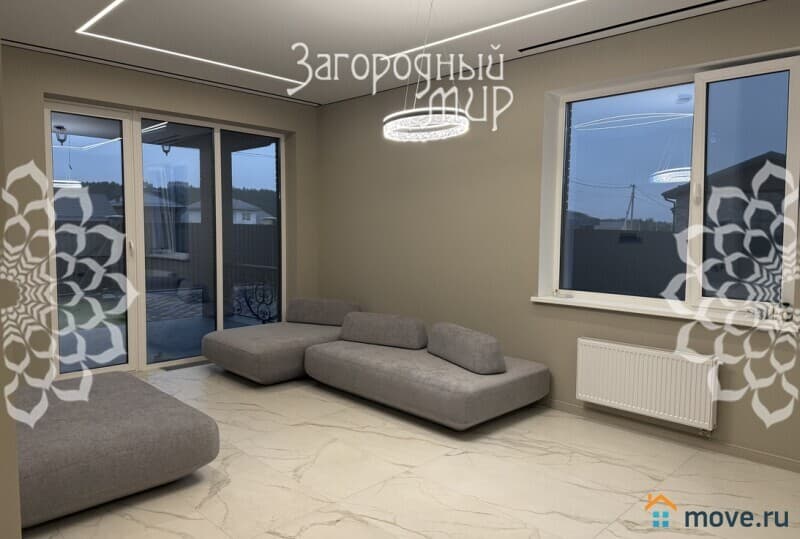 Кровля - металлочерепица, окна - тройные стеклопакеты, в доме просторная гостиная-столовая с выходом на террасу, 3 спальни, 3 с/у, гардеробная. Дом частично меблирован, установлена сантехника.
