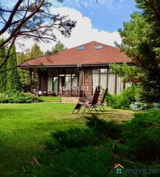 -дом находится в окружении сосен, можжевeльников и голубых eлeй