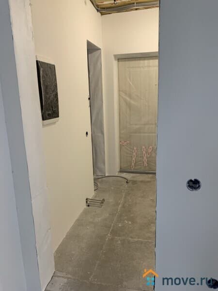 Ремонт: White Box. Установлены трубы водоснабжения и канализации, подготовлены потолки, стены выровнены, загрунтованы и оштукатурены. Выровнены откосы и установлены окна. Электрическая проводка разведена по комнатам, установлены вводные автоматы.