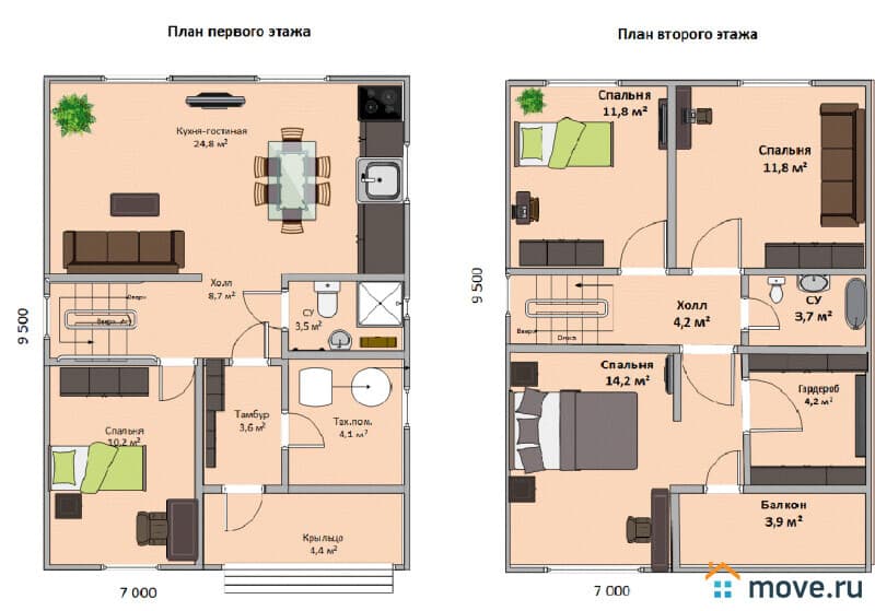 ?Высота потолков: 2,6 м (1 этаж) / до 3,5 м (2 этаж)