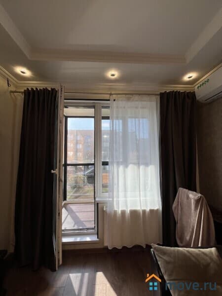 Из окон открывается прекрасный вид во двор. Балкон остеклен двойными стеклопакетами с окнами "в пол".