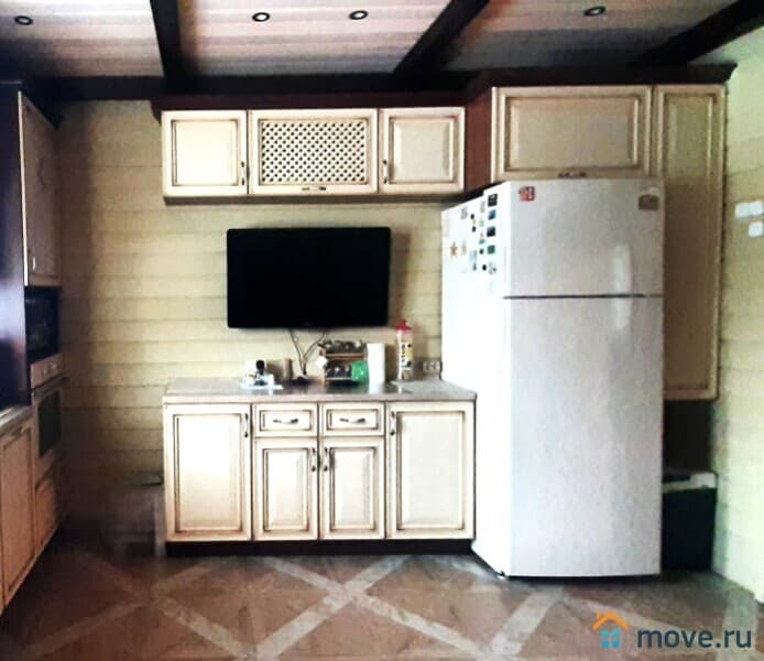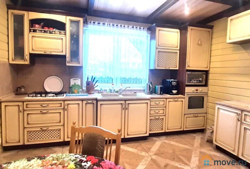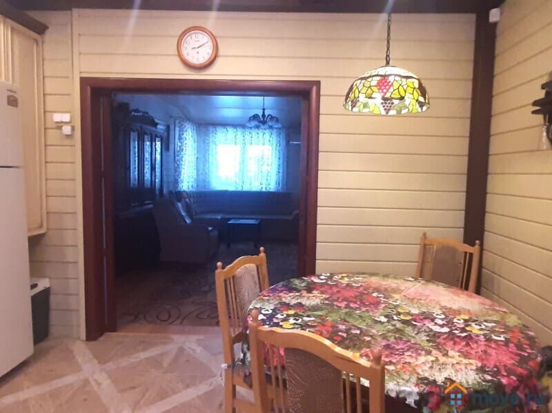 О доме: Одноэтажный дом 123 м?, построен в 2015 году, фундамент свайно-винтовой, брус 190х150 мм, внутренние стены 150х150 мм. Окна Rehau, мягкая кровля CertainTeed USA. Дом имеет 3 входа, кухня-столовая 40 м? (15 м?+25 м?), 3 отдельные комнаты (14 м?,12 м?,11 м?), веранда 13 м? с панорамным остеклением и электрокамином, 2 санузла, душевая с сауной. Электрические теплые полы на кухне и в санузлах, кондиционеры на кухне-столовой и на веранде. Газ, электричество, центральное водоснабжение, своя скважина (34 метра, вода не требует фильтрации), центральная канализация.