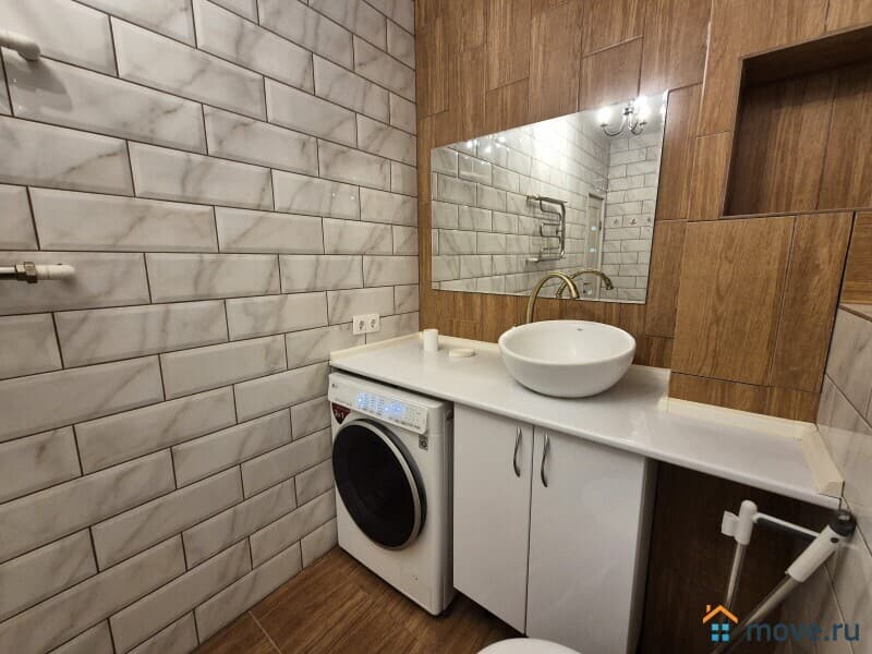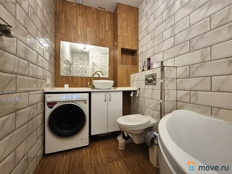 В ванной стиральная машина, туалетные принадлежности, сушилка для белья.