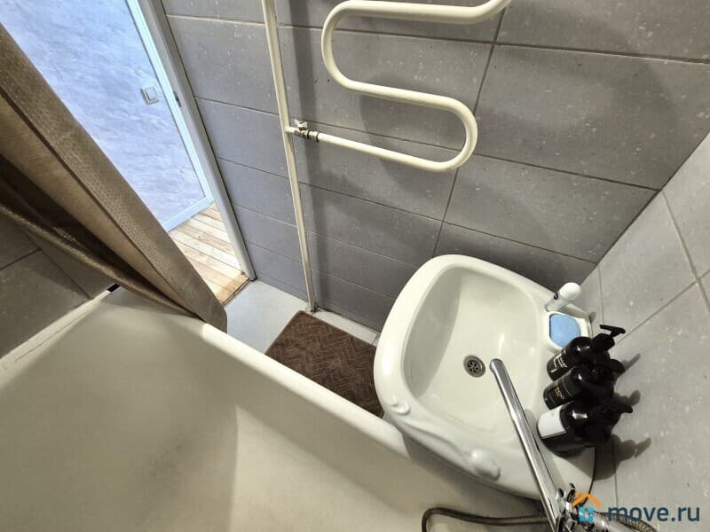 В ванной стиральная машина, туалетные принадлежности, сушилка для белья.